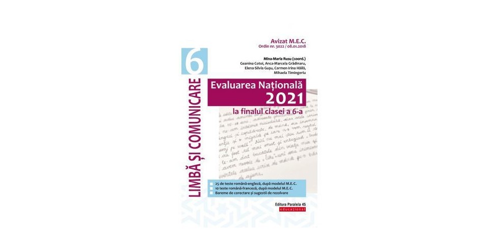 Evaluarea Nationala 2021 - Evaluarea Nationala 2021 la finalul clasei VI. Limba - Aveți mai jos subiectele și baremele celor 15 teste de antrenament en 2021.. Ministerul educatiei a facut publice noile modele de subiecte pentru evaluarea nationala 2021. Evaluarea naţională 2021 începe marţi, 22 iunie 2021, cu prima probă scrisă, cea la limba şi literatura română, urmând ca în 24 iunie să aibă loc proba scrisă la matematică. Aveți mai jos subiectele și baremele celor 15 teste de antrenament en 2021. Regulile pe care elevii trebuie să le respecte la examen. In continuare comunicarea rezultatelor obtinute se va face anonimizat, prin utilizarea codurilor individuale, la avizierele unitatilor de invatamant + pagina web a mec.